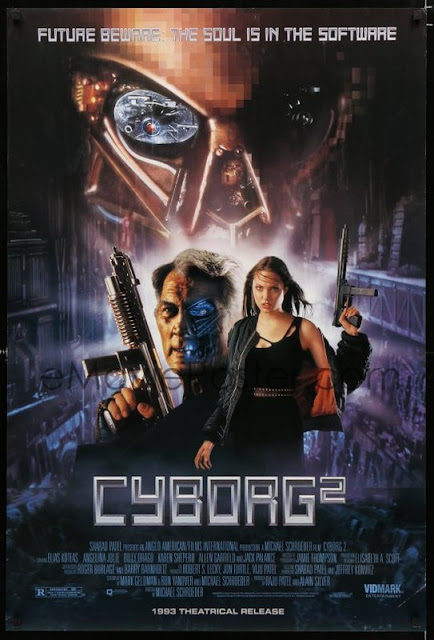 Minulla on tietty paikka sydämessä 90-luvun cyborg-leffoille. Varsinkin niille vähän pienemmän budjetin suoraan videolle julkaistuille elokuville. Vuonna 1989 Masters Of The Universe-elokuvalle piti tulla jatko-osa, mutta suunnitelmat muuttuivat ja elokuvan raunioista syntyi Jean Claude Van Dammen tähdittämä kulttiteos. Samaan universumiin sijoittuu myös elokuva nimeltä Glass Shadow, joka on tavallaan Spin-off Cyborgille. Siksi elokuva sai joissain maissa etuliitteen Cyborg ². Van Dammen elokuvaa kyllä sivutaan nopeasti, mutta muuten kyseessä on aivan oma tarinansa, joka yhdistelee cyborgi-elokuvia, cyberpunk-estetiikkaan ja animesta tuttuihin designeihin. Tämä on myös 17-vuotiaan Angelina Jolien debyyttileffa. Tällä kertaa Albert Pyunin ohjaajan paikalla korvasi Michael Schroeder (Out of The Dark, 1988)