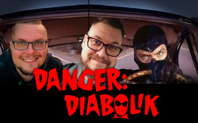 Elokuvaprojektori nimistä youtube-kanavaa pitävä Timo Laakso kutsui allekirjoittaneen ja Leffabunkkerista tutun Ville Vesterin eeppiseen elokuvailtaan päämajaansa. Timo olikin rakentanut kotiinsa varsinaisen elokuvateatterin, joten leffoista nauttiminen olikin aivan maksimissaan isolta kankaalta ja huippuäänentoistolla. Ensimmäiseksi elokuvaksi tämä ammattitason elokuvaharrastaja ja guru oli valinnut todella mielenkiintoisen tapauksen, eli Dino De Laurentiisin tuottaman ja itse Mario Bavan ohjaaman italialaisen rikos/toiminta-elokuvan Danger: Diabolik (1968). Tätä en ollutkaan nähnyt aiemmin.