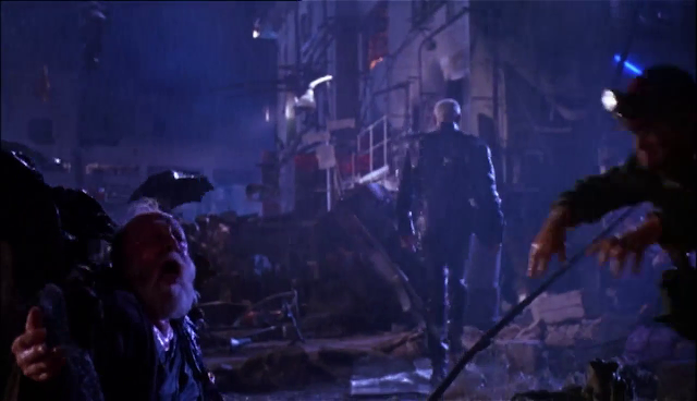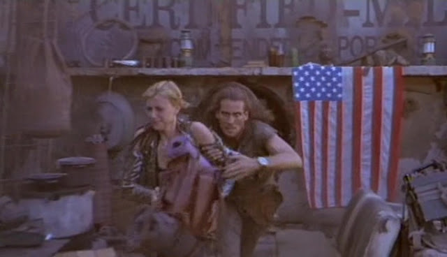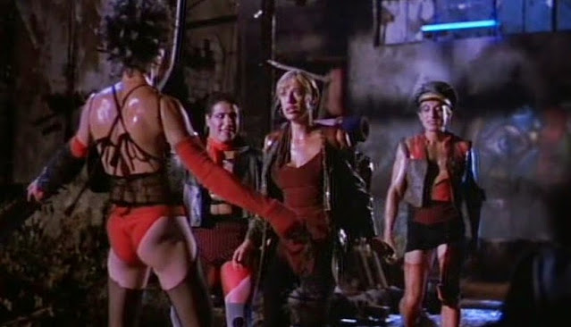 Tarinan sankarit kohtaavat karussa tulevaisuudessa tappajarobotin lisäksi myös muitakin uhkia, kuten mutanttikannibaaleja ja transvestiittijengin. Eikä pidä myöskään unohtaa ulkona vaanivaa happosadetta.