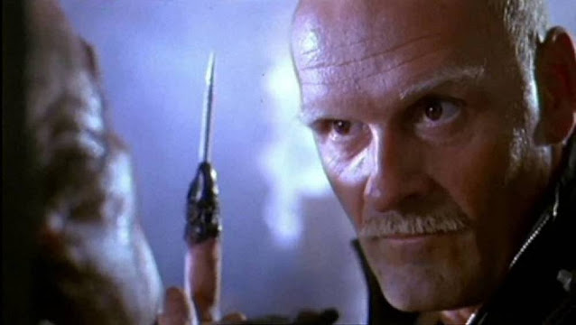Tappaja-androidia esittää aiemmin mainitsemani John Saint Ryan. Vaikka rooli on kuin suoraan terminaattorista, on Ryan Arskaan verrattuna viikseineen hieman setämäisempi ja vaatetuskin lainattu Rob Halfordilta. Vain koppalakki puuttuu. Uhkaavuus ja uskottavuus kaverilla on kyllä tallella, ja hahmo vaikuttaakin melko vaaralliselta tapaukselta.