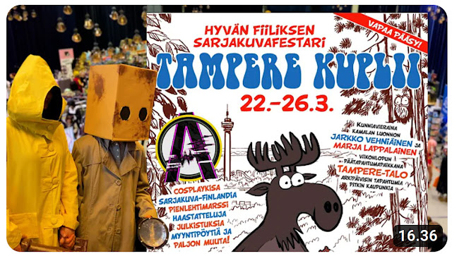 Meikäläinen sai Alterstreamin väeltä kutsun Tampereella järjestettäville sarjisfestareille, nimeltä Tampere Kuplii. Harmi, että en tänä vuonna päässyt paikalle kiireiden takia, mutta onneksi Henkka ja Jusa saivat tallennettua komean videon tapahtumasta. Videolla on jopa terveiset Kaitsulle, kiitos siitä ja iso kiitos Jusalle, joka nappasi meikäpojalle mainiota lueskeltavaa, vaikka en paikalle päässytkään. On se erijannu tuo Jusa!