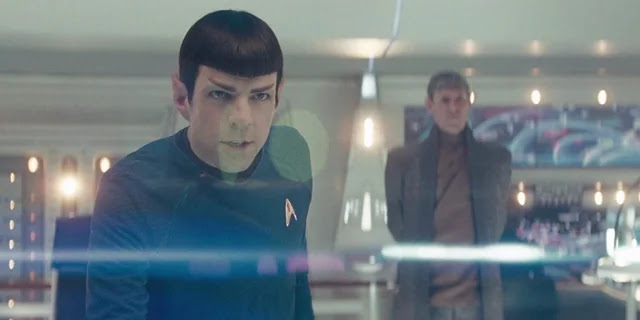 Star Trek Into Darkness jatkaa samalla vauhdikkaallla sekoilullaan heti alkumetreiltä ja juuri äskeittäin opitut tutut hahmot, sekä kiinnostava tilanne imaisevat mukaansa saman tien. Tässä vaiheessa käy jo selväksi, että näissä leffoissa ei ole kyse kuivasta poliittisesta sci-fistä, vaan toimintaleffoista, jotka on tuotu sci-fi maailmaan visuaalisesti. Kyseessä voisi yhtä hyvin olla vaikka Mission Impossiblen ryhmä suorittamassa tehtäväänsä, mutta avaruusopperan lavasteissa. Myös Indiana Jones käy jälleen mielessä, kun katsoo alkukohtausta alkuperäisväestöineen.