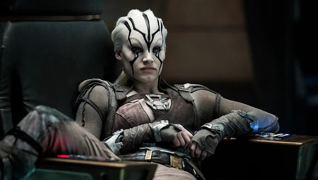 Myöskin Sofia Boutella on maskeerattu tunnistamatomaksi (harmi kyllä), mutta hänen hahmonsa Jaylah on oikein hyvä lisä franchiseen. Tässäkin osassa soitetaan oldschool räppiä. Jaylah kuuntelee mankastaan Public Enemyn Fight the Poweria ja lopun huipennuksessa kuullaan jälleen Beastie Boysin Sabotage, jota käytetään kyllä mainiosti luomaan tunnelmaa. Trekkiläiset pitävät tätä musiikkia klassisena musiikkina. Osittain elokuva oli huippuviihdyttävä, vaikka en tässä maratonissa sille enää syttynyt niin paljoa, kuin edelliselle osalle. Silti jäin toivomaan, että tälle sarjalle tulisi vielä neljäs osa.
