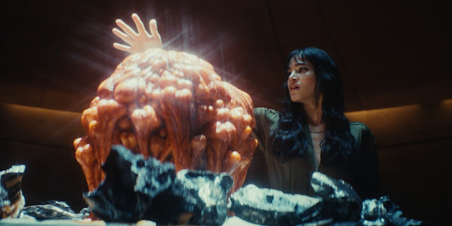 Netflixissä on loistava episodimainen kauhukokoelma lyhyitä tarinoita, joita fantasiakauhun mestari Guillermo Del Toro houstaa. Jokainen sarjan jakso on siis oma lyhyt tarinansa ja jokaisen jakson on ohjannut joku merkillepantava ohjaaja. Näistä kaikista tarinoista omaksi suosikikseni nousi Panos Cosmatoksen ohjaama The Viewing – Katselemus. Katselemus on n. tunnin mittainen visuaalinen trippi. Jos olet nähnyt ohjaajan mahtavan Mandy-elokuvan vuodelta 2018, voit hieman arvata millaisesta menosta on kyse. Jakso alkaa vahvasti 70-luvun elokuvia muistuttavasti ja hyvin tyylitellysti, mutta tunnetun rauhallisesti. Joukko henkilöitä kokoontuu rikkaan isännän erikoiseen taloon, jossa tapahtuu lopulta kummia. Juttuun liittyy mystinen meteoriitti. Isäntänä toimii itse Peter Weller (Robocop). Visuaalisesti jakso on erittäin upea ja olin aivan haltioissani sitä katsoessani. Tahti on verkkainen mutta pitää otteessaan. Jos aiot katsoa vain yhden jakson tätä sarjaa, niin suosittelen vahvasti tätä jaksoa.