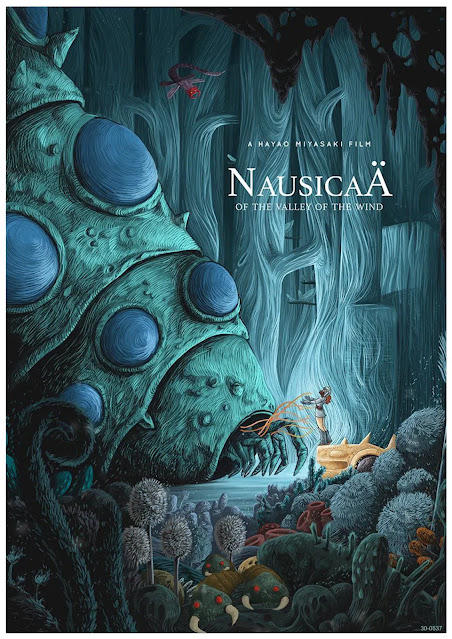 Tuulen laakson Nausicaä oli mielestäni oikein mainio animaatioelokuva, vaikka suomidubbaus aiheutti harmitusta. Sen upeasti luotu maailma sai ihailemaan animaation jälkeä. Nostalginen kasarityyli vielä korosti tätä kokemusta. Post-apokalyptiset elokuvat ovat muutenkin meikäläisen suosikkeja, niin siitä aiheesta ropisi myös plussaa. Eikä elokuvan yhtymäkohdat Frank herbertin Dyynin kanssa vähentäneet viehätystä. Tämä nousi nopeasti top kolmoseen Miyazakin ohjaamista anime-elokuvista, Totoron ollessa edelleen kärjessä. Suosittelen, jos et ole vielä nähnyt. Elokuva on Maailman luonnonsäätiön suosittelema, eikä syyttä.